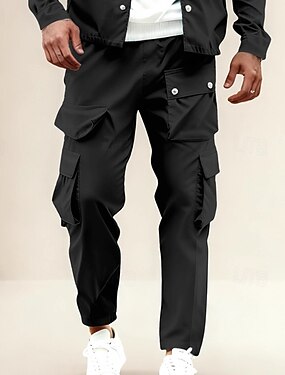 Homens Calças Cargo Calça cargo Calças de trabalho Zíper Bolso multi Tecido Vestível Pavio Humido Comprimento total Ao ar livre Casual Diário Moda Roupa de rua Preto Azul Sem Elasticidade