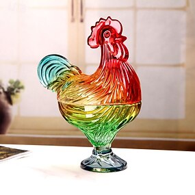 Pote de doces artesanal e colorido em cristal, em formato de galinha. Pote artístico com tampa, reutilizável, ideal para sobremesas e lanches em restaurantes. Perfeito para decoração de casa e