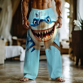 Homens Animal Tubarão Criaturas marinhas Calças Calça casual Calças largas Cintura Média Engraçado Ao ar livre Férias Cintura elástica com cordão Calças de linho com bolsos Primavera Outono Impressão