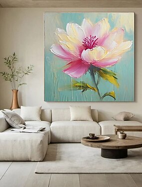 Pintura a óleo sobre tela com flores rosa pintadas à mão, arte decorativa para parede de sala de estar, design moderno com arte floral.