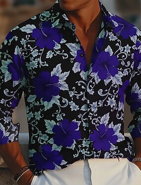 Homens Estampa floral Flores Camisa Social camisa de botão Manga Longa Moda Casual Feriado Casual / Diário Primavera Outono Aberto para a Lateral Impressão 3D camisas de colarinho Roxo Verde Vermelho