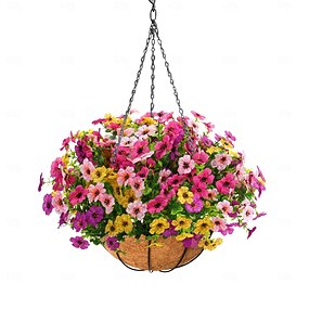 Cesta de flores artificiais suspensas para exterior, conjunto de 12 flores artificiais para varanda, pátio, jardim e decoração de casa na primavera e no verão.