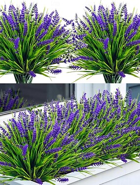 8 ramos de folhagem artificial de lavanda, arbustos e flores artificiais resistentes aos raios UV, para pendurar em vasos, cercas florais, decoração interna e externa, arranjos de flores para mesas de casamento e enchimento de buquês.