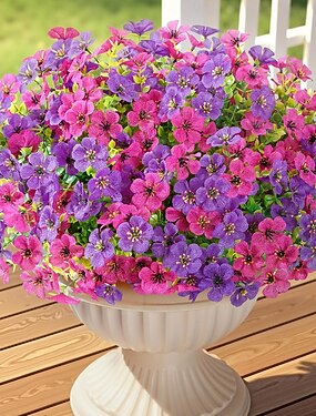 24 ramos de flores artificiais para exterior, resistentes aos raios UV, flores de primavera artificiais para vasos de plantas, decoração de casamentos, casa, jardim, pátio e varanda (8 cores)