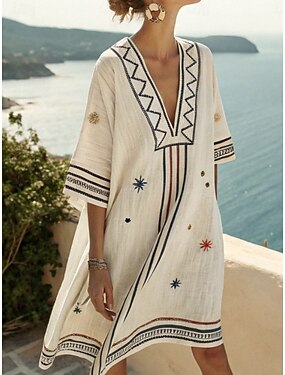 Mulheres Minivestido Vestido de turno Casual Ao ar livre Para Noite Ajuste Largo Floral Geométrica Listra Meia Manga Decote V Azul Branco Vermelho Escuro Vermelho Verão Primavera