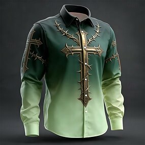 Homens Cruz Religião Camisa Social camisa ocidental Camisa de caubói Manga Longa Vintage retrô Casual Ao ar livre Roupa de Trabalho Primavera Outono Aberto para a Lateral Impressão 3D Camisa tipo