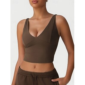 Mulheres Cor Sólida Tanque Sutiã de tênis Sutiã Esportivo Sem Manga Secagem Rápida Resistente ao Choque Pavio Humido Respirável Tênis Pickleball Corrida Decote V Malha Íntima Blusas Azul Café Azul