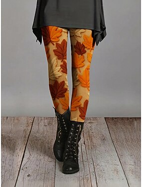 Mulheres Leggings Leggings aconchegantes Férias Casual Comprimento total Cintura Alta Gráfico Folha Estampado Conforto Confortável Com Stretch Casual Diário Férias Laranja Primavera Outono Fino