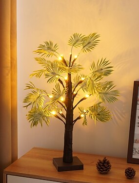 Luminária decorativa de LED em formato de árvore com folha de bananeira, 53 cm/20,87 polegadas, alimentada por bateria AAA e USB. Dupla função: primavera e verão. Ideal para ambientes internos, como