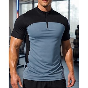 Homens Bloco de cor Camiseta de Corrida Camisetas Compressão Camisa Atlético Top de esportes Verão Patchwork Zíper de um quarto Manga Curta Secagem Rápida Pavio Humido Respirável Treino de Ginástica