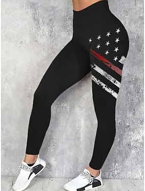 Mulheres chinês Leggings Férias Moda Roupa de rua Capris Cintura AltaPantsDia da Independência Americana Gráfico Bandeira americana Conforto Macio Confortável Com Stretch Diário Ao ar livre Férias