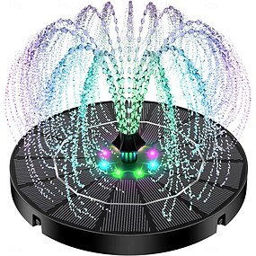 Fonte de banho para pássaros movida a energia solar, com bomba de fonte solar RGB e luzes LED coloridas para jardim, pequeno lago, piscina externa e peixes.