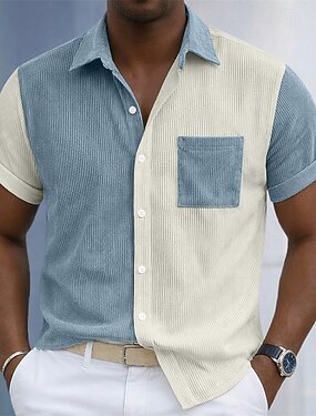 Homens Camisa Social Camisa casual Camiseta de Veludo camisa de botão Rosa Damasco Azul Claro Manga Curta Tecido Colarinho de Camisa Casual Diário Bloco de cor Roupa Elegante Moda Casual Informal mas