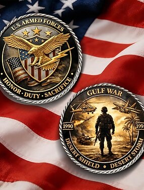 Moeda comemorativa da Guerra do Golfo das Forças Armadas dos EUA (1990-1991), homenagem militar à Operação Escudo do Deserto e à Operação Tempestade no Deserto, presente colecionável em homenagem à honra, ao dever e ao sacrifício, para veteranos.