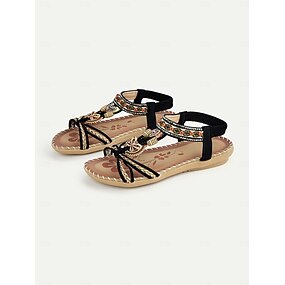 sandálias rasteiras femininas estilo boêmio com enfeites de contas e tira elástica, sapatos de verão confortáveis para praia e passeios casuais