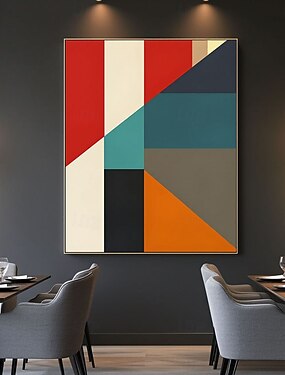 Pintura a óleo abstrata feita à mão, pintura a óleo em blocos de cores, arte de parede, pintura geométrica colorida grande, tela moderna de meados do século, obra de arte original feita à mão,