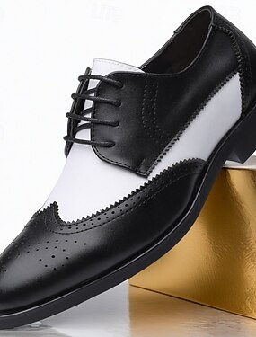 Sapatos Oxford masculinos clássicos em preto e branco – ideais para casamentos e festas, com design elegante em couro para eventos formais.