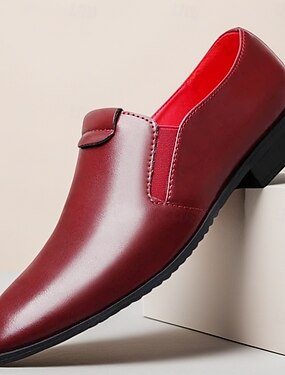 Mocassins sociais masculinos de couro sintético, modelo slip-on – sapatos elegantes para o escritório e ocasiões formais, com acabamento liso, confortáveis para reuniões de negócios, casamentos e eventos especiais.