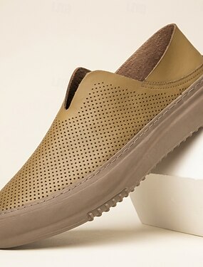 Mocassins masculinos casuais bege perfurados, leves e respiráveis, confortáveis para uso diário, viagens, dirigir, escritório e lazer de verão.