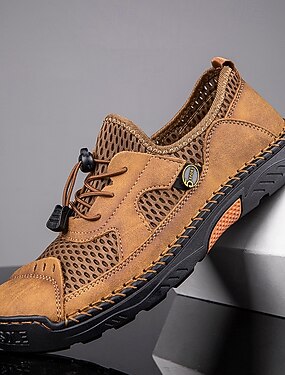 Tênis masculinos de malha verde e amarela – calçados esportivos casuais respiráveis com blocos de cores para caminhadas, viagens e estilo de rua