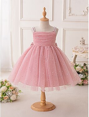 Infantil Para Meninas Vestido de festa Côr Sólida Manga Curta Ocasião Especial Aniversário Paetês Princesa Doce Poliéster Altura dos Joelhos Vestido de festa Verão Primavera Outono 4-13 anos Rosa