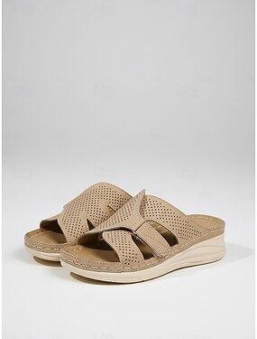 Tamancos femininos de couro cor camelo com recortes, detalhe de laço, solado macio e confortável, ideais para uso diário, viagens e jardinagem. &passeios casuais