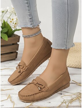 Mocassim Feminino Camel com Detalhe de Laço - Estilo Casual Clássico Flats Flexíveis e Confortáveis para Uso Diário Direção Viagens e Looks de Fim de Semana