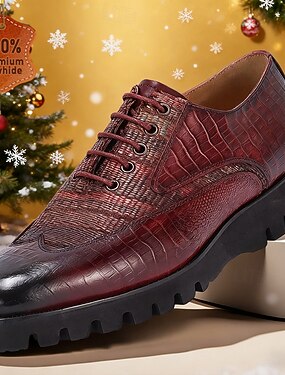 Sapatos sociais masculinos em couro legítimo com estampa de crocodilo – sapatos de couro ousados e elegantes, perfeitos para festas de Natal, confraternizações de fim de ano e eventos formais.