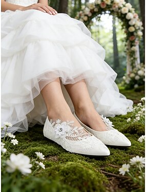 Sapatos de noiva femininos em renda marfim com salto plataforma e estampa floral - modelo elegante e romântico para casamentos na cidade.