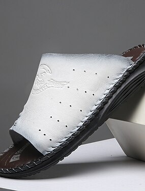 Sandálias mule brancas masculinas, modelo slip-on, com perfurações, respiráveis e confortáveis. Estilo minimalista e casual, perfeitas para usar em casa, nas férias, em resorts e no dia a dia durante o verão.