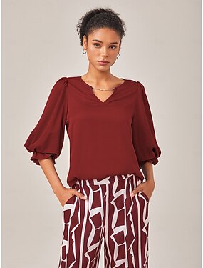 Mulheres Blusa Tops de noite gravata na frente Elegante Metálico à moda Manga 3/4 Decote V Tops regulares Festa de Noite Convidado do casamento Semi formal Fúcsia Primavera / Outono / Inverno / Verão
