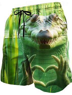 Homens Animal Crocodilo Forma de Coração Calção Justo de Natação Shorts de Natação Bermuda de Surf Cintura Média Engraçado Ao ar livre Férias Dia a Dia Bolsos laterais Forro de malha Cintura elástica