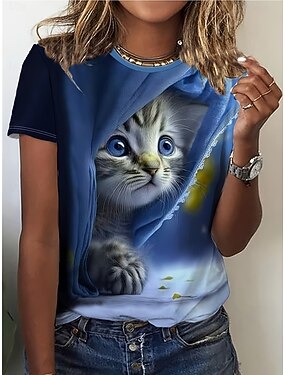 Mulheres Camiseta Imprimir Floral Gráfico Moda Clássico Manga Curta Gola Redonda Tops regulares Casual Diário Final de semana Azul Branco Verde Preto Verão Primavera