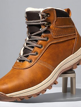 Homens Botas Coturnos Caminhada Vintage Diário Couro Ecológico Confortável Botas Cano Médio Com Cadarço Preto Amarelo Outono Inverno