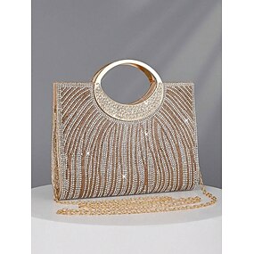 bolsa clutch feminina para noite com strass e alça redonda – bolsa de cristal dourado brilhante para coquetéis, casamentos e eventos formais