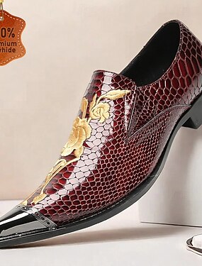 Sapatos sociais masculinos de couro com padrão de crocodilo na cor bordô, mocassins de luxo com bico fino e bordado floral para casamentos, festas e ocasiões formais