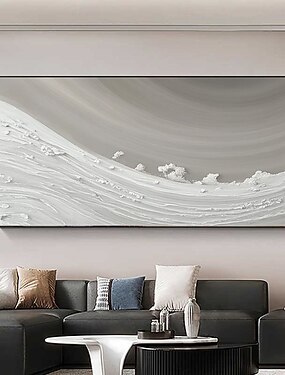 Pintura a óleo artesanal em tons de cinza e branco com ondas, arte de parede moderna, pintura a óleo abstrata moderna com ondas do oceano, paisagem marinha, decoração para casa, arte de parede