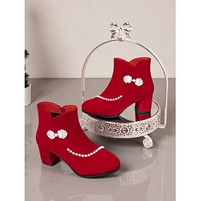 Botas vermelhas femininas de cano curto com detalhes em imitação de pérola – estilo elegante para as festas de fim de ano, forro macio, zíper lateral prático, perfeitas para festas de Natal, looks de inverno, encontros familiares e para presentear.
