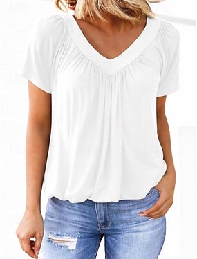 Mulheres Top de ombro a descoberto Camiseta Moda Clássico Casual Manga Curta Decote U Tops regulares Diário Para Noite Final de semana Preto Verde Tropa Azul Marinha Verão Primavera