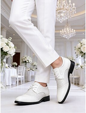 sapatos oxford masculinos de couro sintético branco com design perfurado, fecho de cadarço, sola confortável, estilo casual e casual elegante