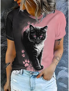 Mulheres Camiseta Gráfico Geométrica à moda Clássico Manga Curta Gola Redonda Tops regulares Casual Diário Amarelo Rosa Roxo Claro Verão Primavera
