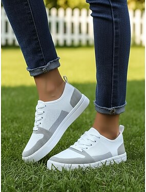 Tênis feminino branco de corrida em mesh respirável, leve e com cadarço, ideal para corrida, viagens e academia. &conforto do dia a dia
