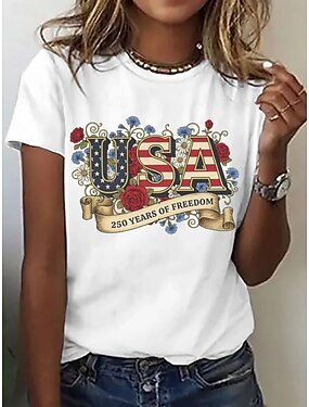 Mulheres Camiseta Imprimir Floral Gráfico Plantas Moda à moda Clássico Manga Curta Gola Redonda Decote Redondo Tops regulares Casual Diário Final de semana Azul Verde com bege Preto Marron Cáqui