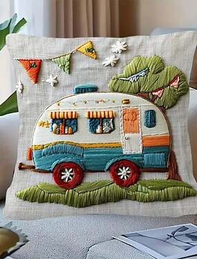Capa de almofada vintage com estampa plana 2D em formato de tenda, capa de almofada decorativa com impressão digital para sofá, quarto, sala de estar e decoração de casa.