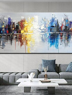 pintura colorida abstrata da cidade pintada à mão em tela paisagem urbana pintura a óleo arte pintada à mão pintura única arte contemporânea para sala de estar decoração de quarto decoração de parede
