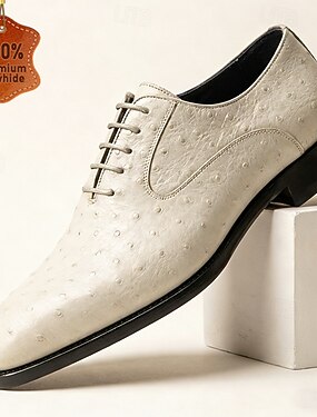 Sapatos sociais masculinos Oxford brancos com textura de crocodilo e biqueira preta, modelo clássico com cadarço, ideais para casamentos, eventos corporativos, banquetes e ocasiões noturnas.