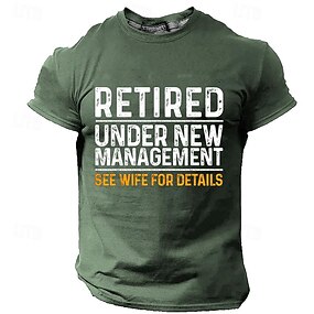 Camiseta Gráfica Masculina de Manga Curta Design Engraçado de Humor sobre Aposentadoria "Aposentado Sob Nova Gestão Veja a Esposa para Detalhes" Presente de Relacionamento Familiar