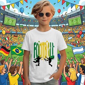 100% Algodão Infantil Para Meninos Branco Gráfico Jogador de futebol Camisa Blusa Gola Redonda Manga Curta Ao ar livre Dia a Dia Moda Roupa de rua Designer Estampado Verão