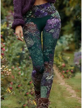 Leggings Femininas Viking Boho Férias Estilo Vintage Moda Compridas Cintura Alta Gráfico Floral Impressão Térmica Quente Macias Respiráveis Elásticas Formais Férias Primavera Outono Inverno Slim Fit