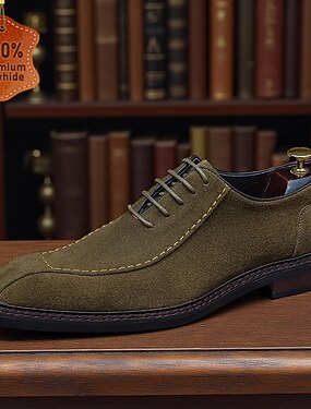 Sapatos Derby masculinos de camurça e couro bovino genuíno - sapatos sociais clássicos para uso formal no escritório e reuniões profissionais